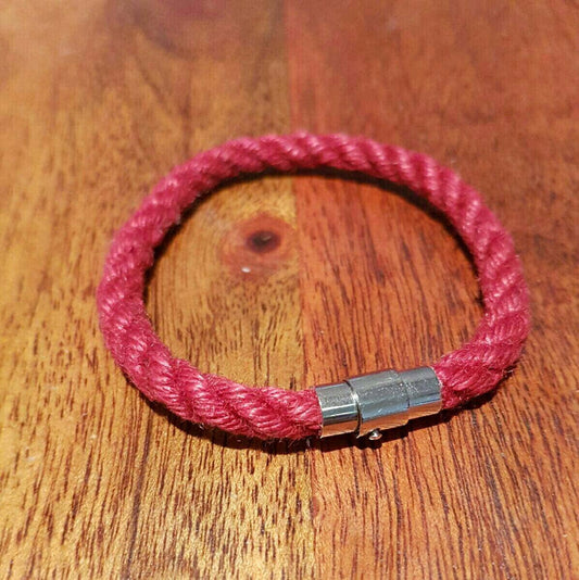 Red shibari bracelet made with jute rope